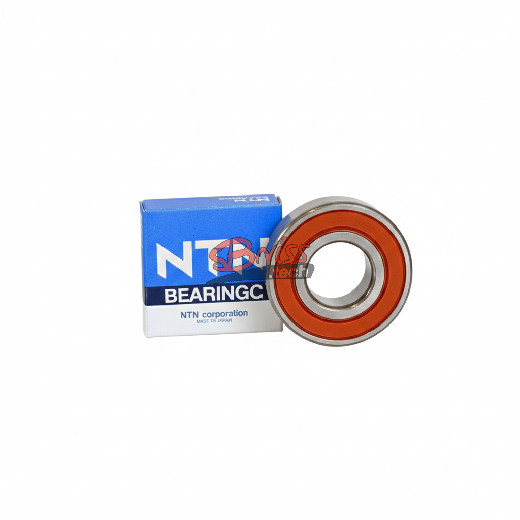 NTN — Łożysko kulkowe zwykłe jednorzędowe, uszczelnienie stykowe gumowe NBR z obu stron, rowek osadczy na pierścieniu zewnętrznym i pierścień sprężynujący